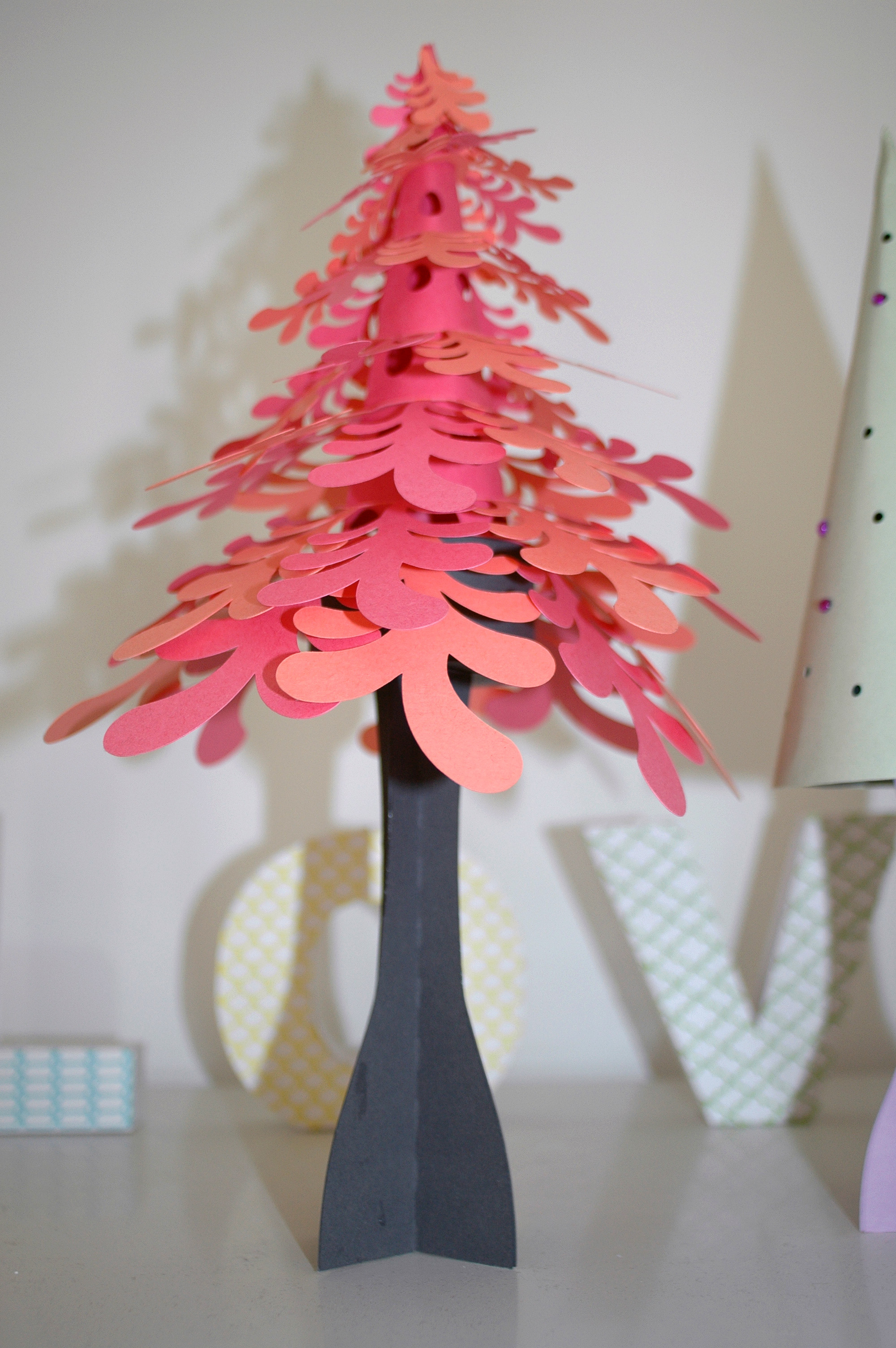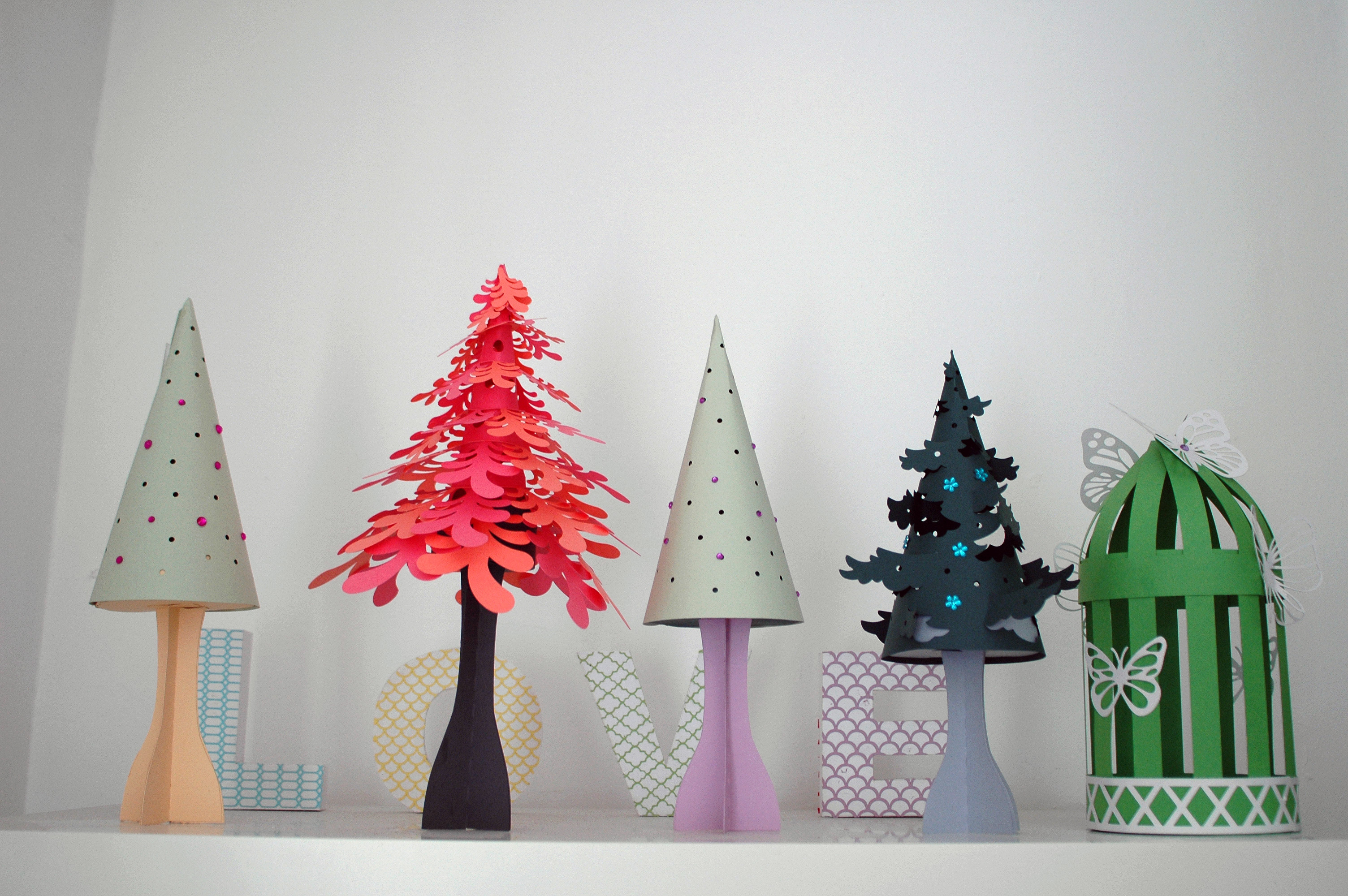 Here are a few trees I have cut recently, the orange and pink one is a real stunner, I created it after running out of my fave green paper so am now on a mission to find some more :P