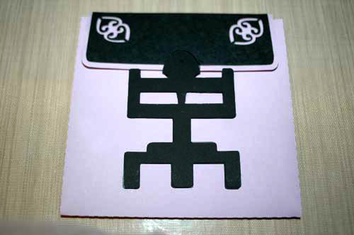 I then added a gift card pouch with uses a tribal motif as an enclosure to hold the pouch flap down.