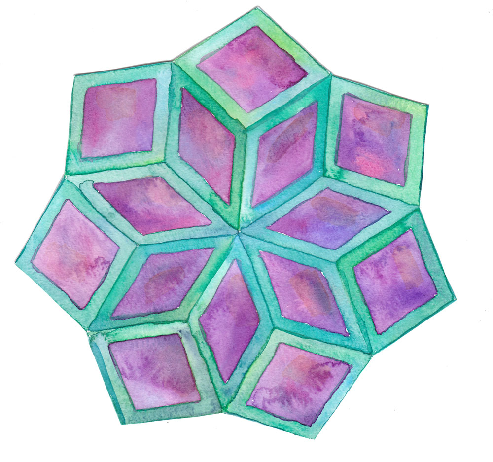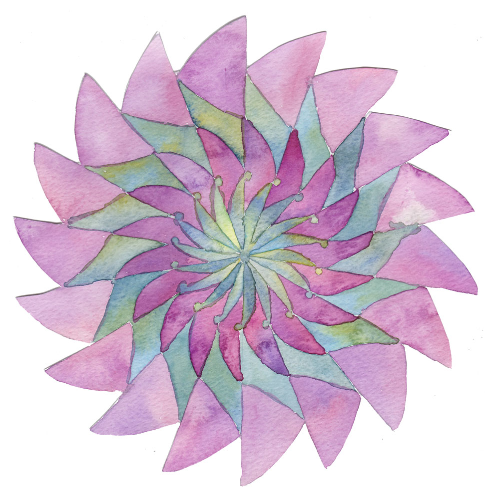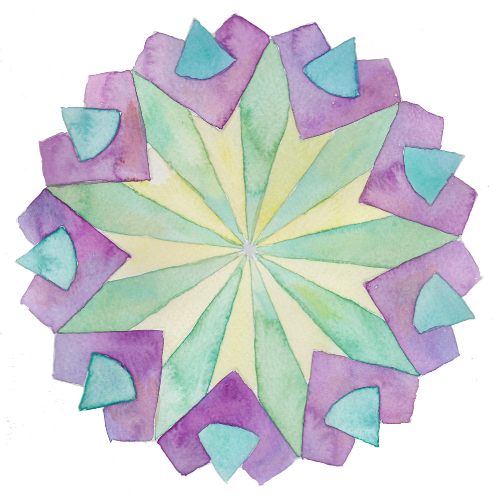 On Saturday I spent time playing with watercolour paints in purples and greens, first painting some mandala type patterns