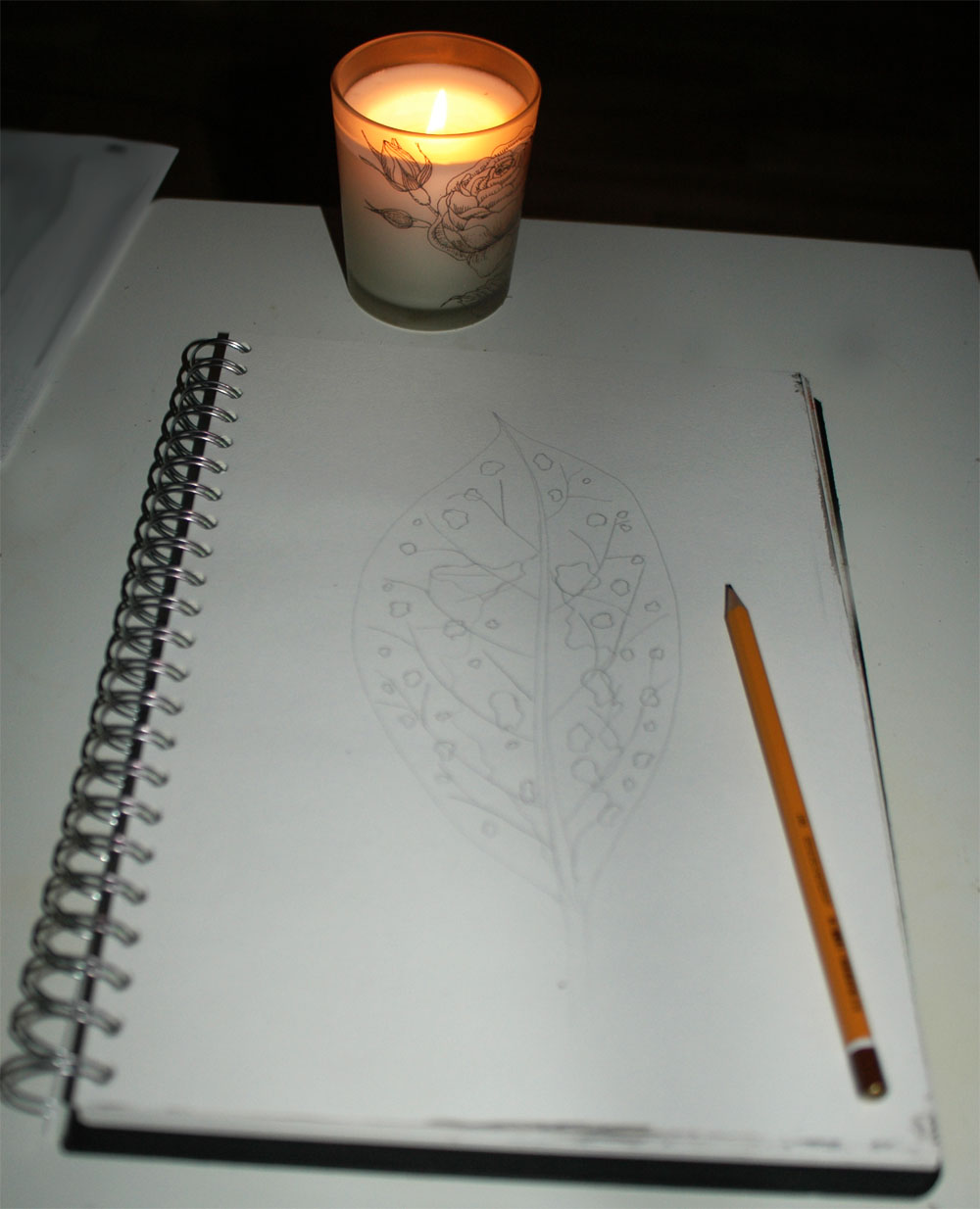 I observed Earth Hour on sunday, switched off all the lights in my house and drew a Pulmonaria leaf by candle light.