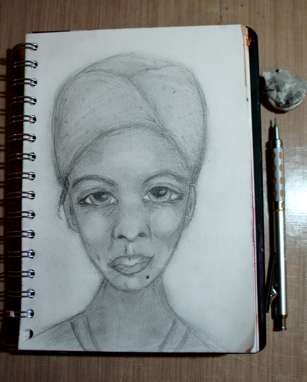I decided to try to draw this girl’s face as an older woman of 60+ years.