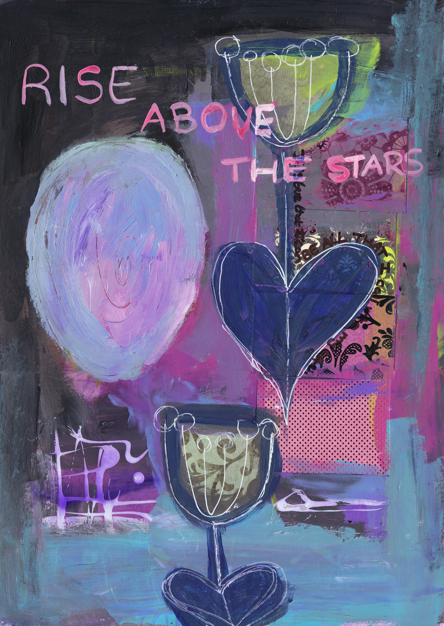 This Lifebook lesson required us to ‘be in the moment’ and use layers of acrylic ink, paint and collage to make a statement about the now.