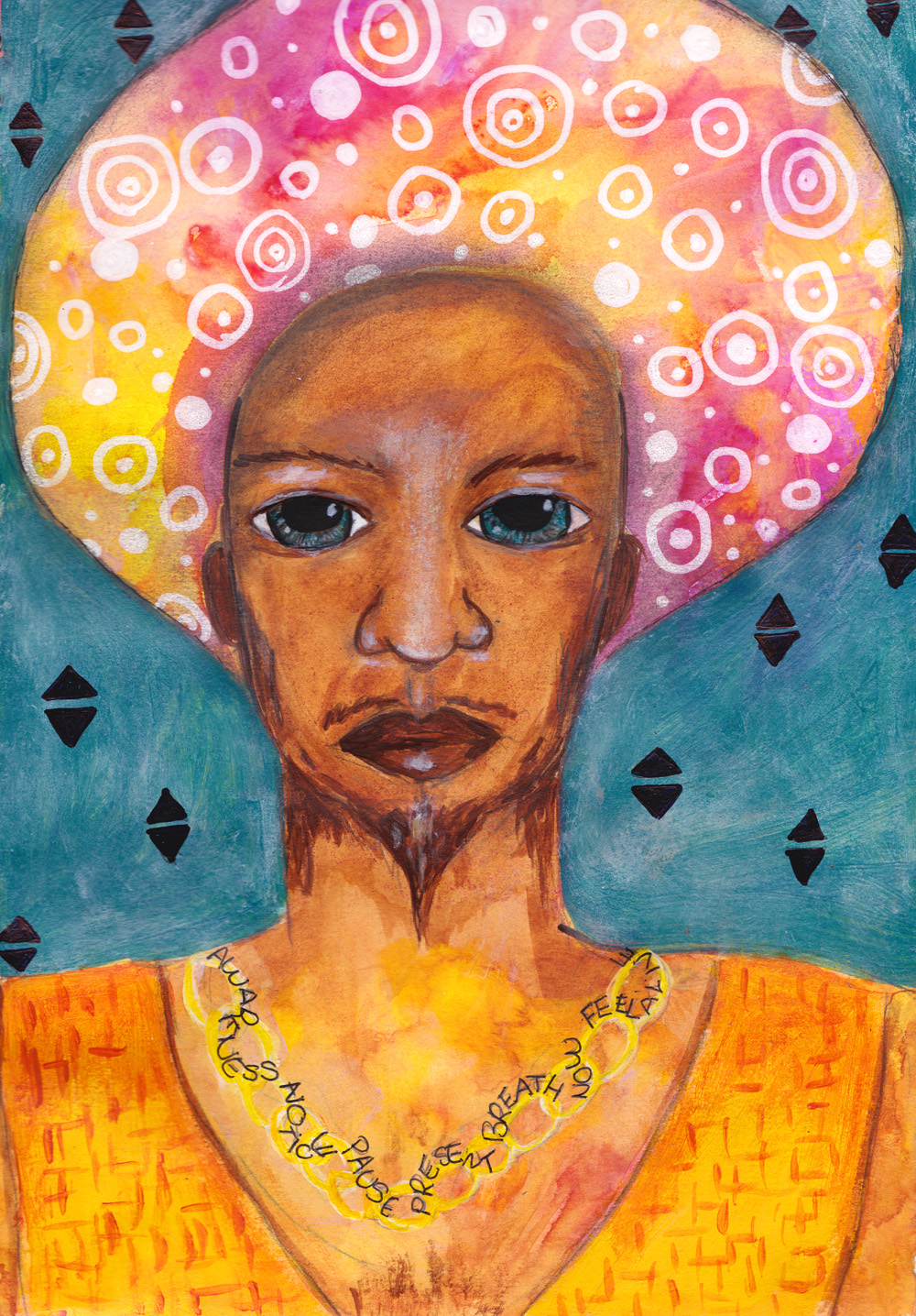 This was a lifebook lesson about using patterns in mixed media artwork, we had to create a stag, I then made another one in my art journal featuring a man.