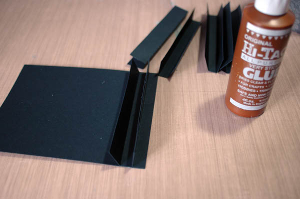 Then glue one of the end sections to your hinge spine with the ‘lip’ on the inside.