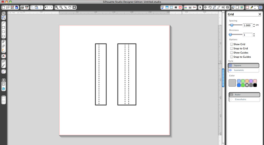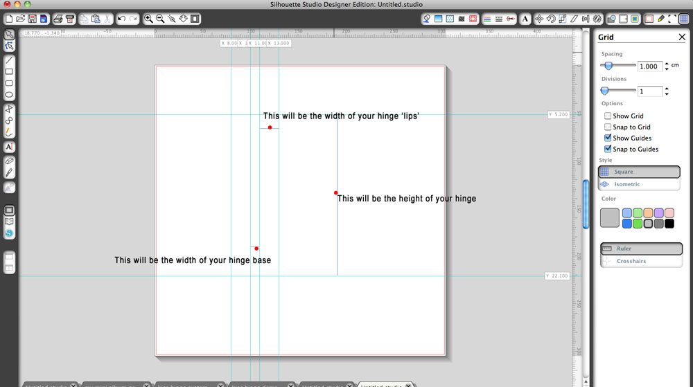 Firstly you need to open up your Silhouette Studio software, then switch on your grids and guides, I made my grid in 1cm squares.