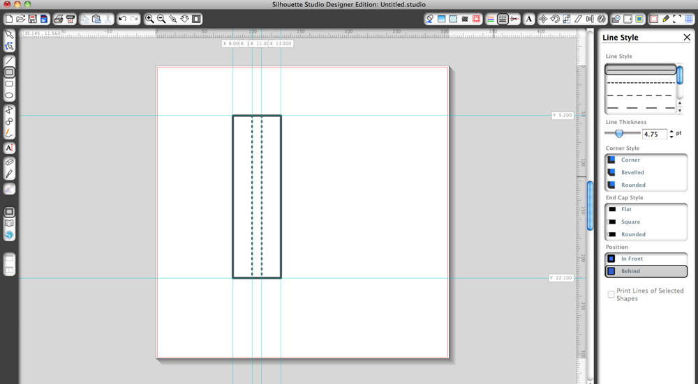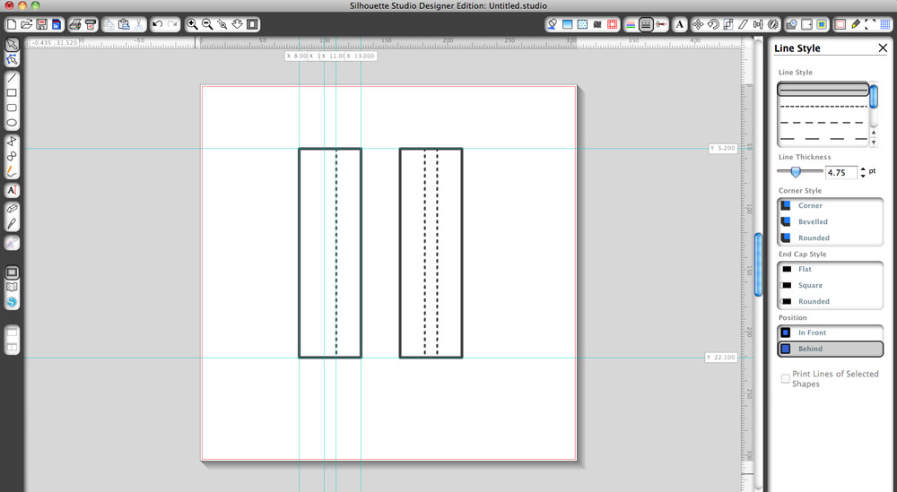 Then create 2 perforated lines along the inner guides, these will be your score/fold lines