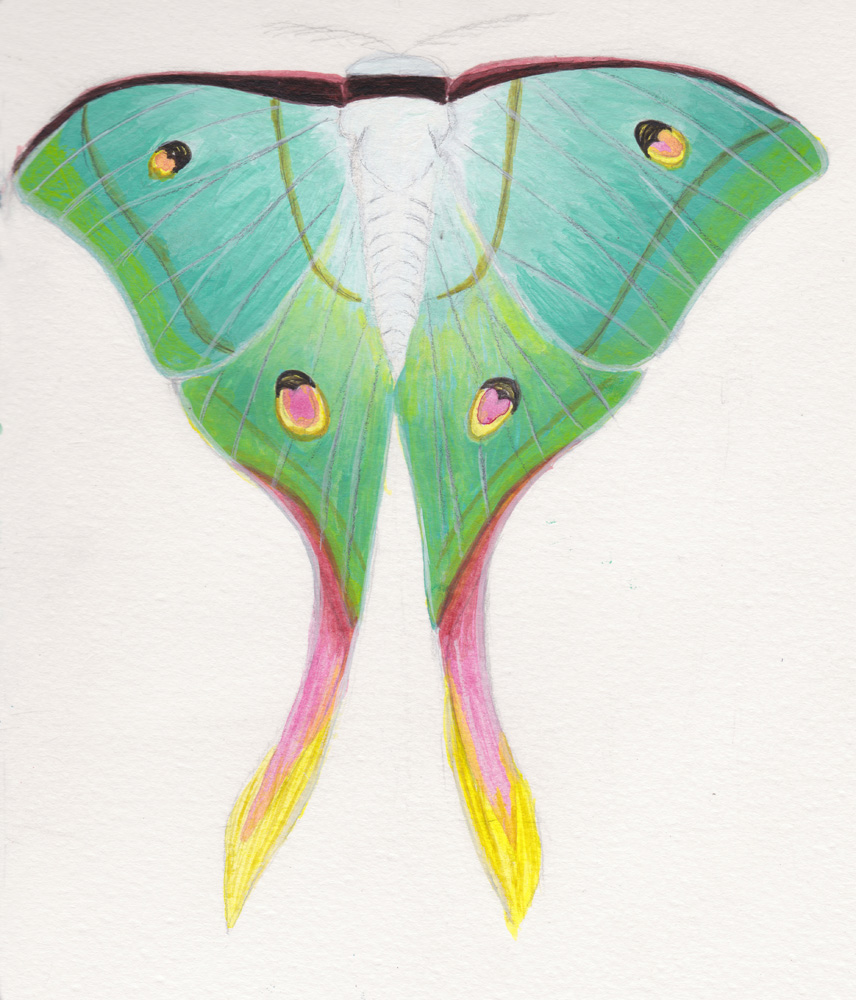 Art, Nature Luna Moth painting Posted by Jo on September 3, 2014 I decided to paint a Luna Moth for a new moth lady artwork. These moths are also known as Giant Silkworm Moths and are truly beautiful. My moth is a bit lopsided and the wingspan is much wider in real life, I was just a bit pushed for space… Share this: Click to share on X (Opens in new window) X Click to share on Facebook (Opens in new window) Facebook Click to share on Tumblr (Opens in new window) Tumblr Click to share on Pinterest (Opens in new window) Pinterest Click to email a link to a friend (Opens in new window) Email More Click to share on LinkedIn (Opens in new window) LinkedIn Click to share on Reddit (Opens in new window) Reddit Like Loading... Related