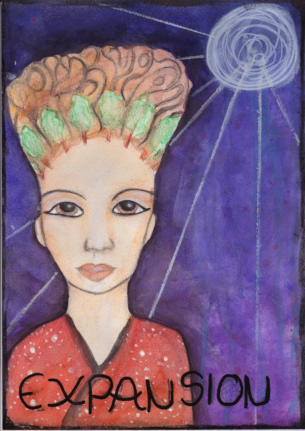 This was a life book lesson where we had to show the passage of time by painting a young face with white hair.