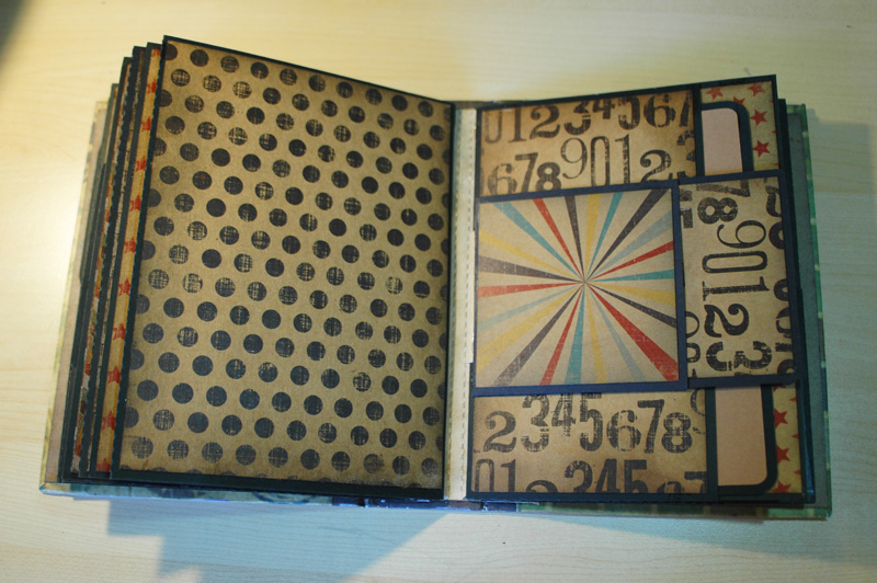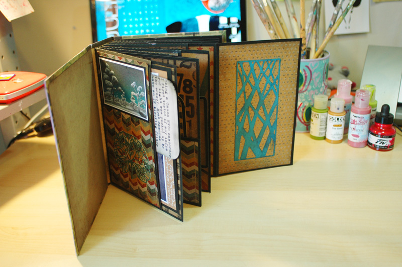 I made this mini album following a pattern by Kathy Orta of Paper Phenomenon. The paper used is Kraft Fun Day by My Minds Eye and I intend to use it to hold a printed copy of my blog :) I painted the cover using mixed media paints, stamping and stencils.