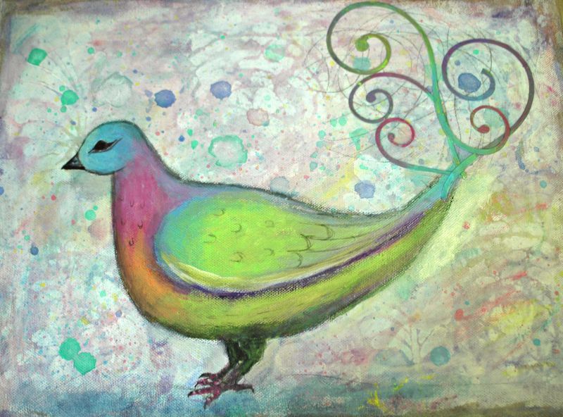 I recently finished painting this little bird on a canvas I found in a new store that opened up nearby.