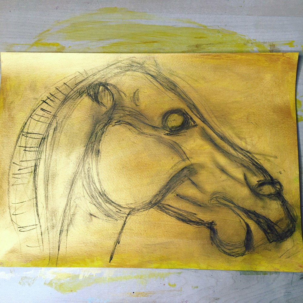 I’ve literally just finished sketching this horses head in charcoal, it’s the first time I used charcoal and it’s so lush.