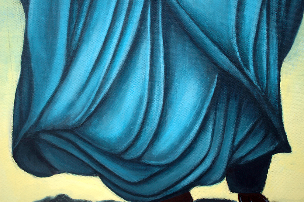 This painting was a journey for me, an exploration of light, blue, fabric, rhythmic form, the desert, and the ancient yet contemporary essences of Africa.