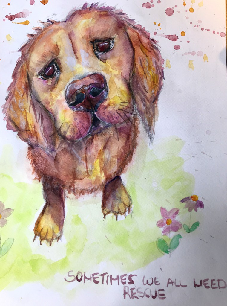 I’ve been doing the taster sessions for this year’s Kaleidoscope course run by Willowing, the very first session by Tamara Laporte was this cute little watercolour doggy, it has a slightly distorted lens view to accentuate the nose.