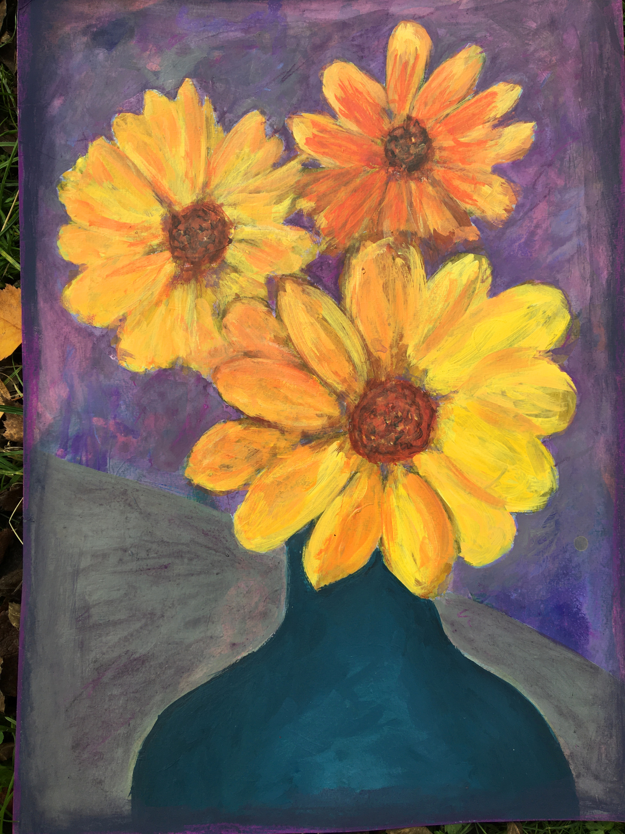 I must say I really enjoyed painting these sunflowers and hope to paint more on canvas.